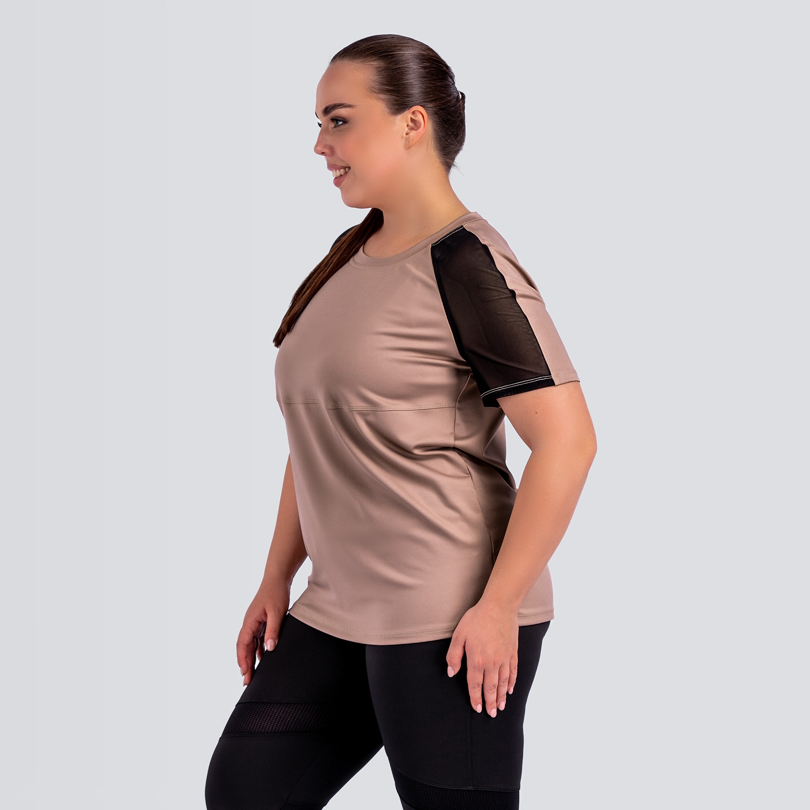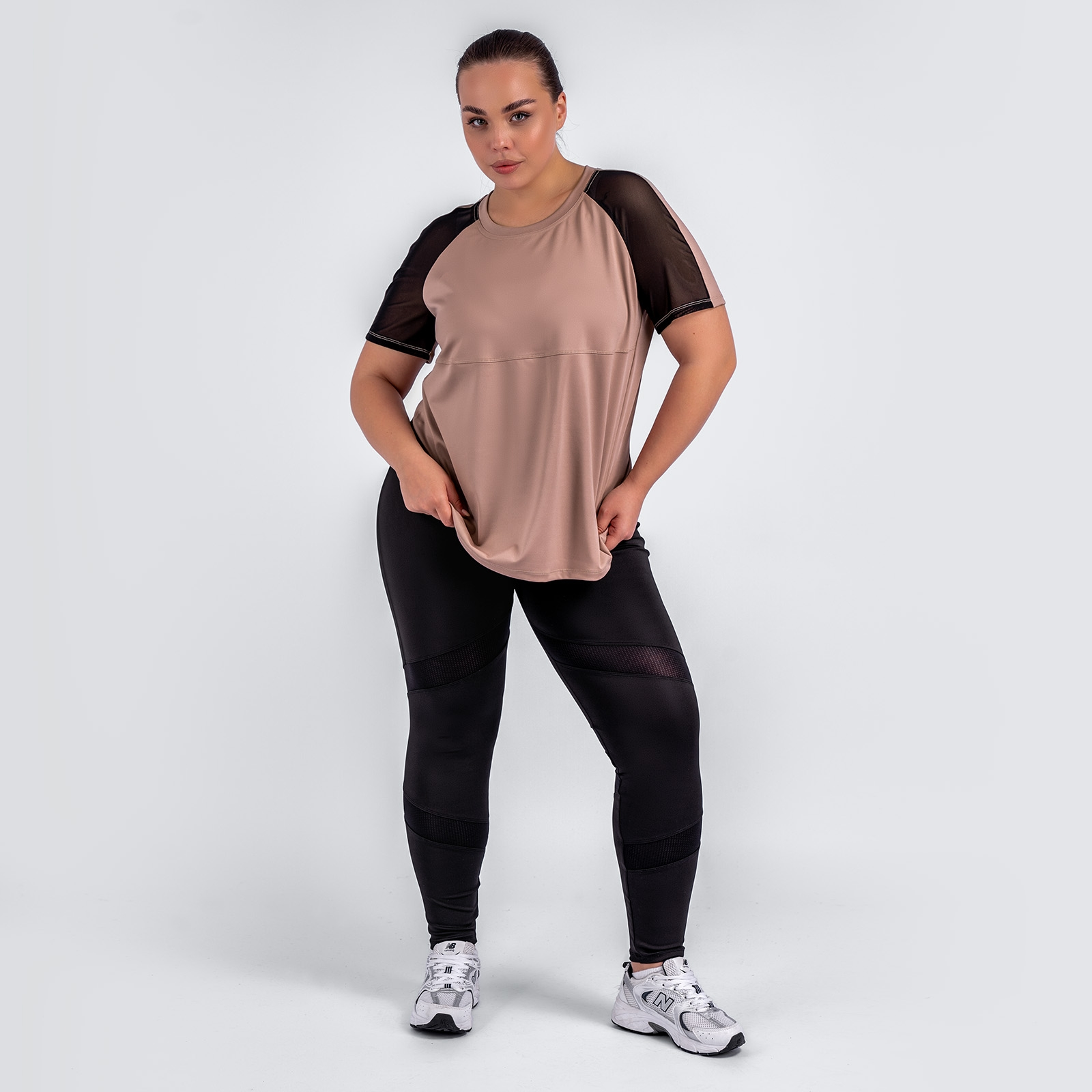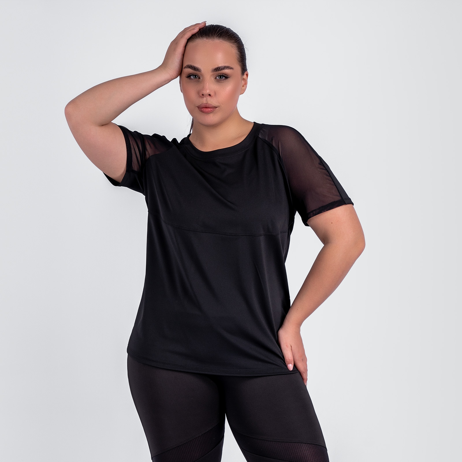 Женская футболка прямого кроя, с резными линиями, вставками из сетки и рукавом реглан. Материал: Meryl Pro - гипоаллергенный материал, не содержащий токсичных компонентов. Обладает высокой эластичностью, но при этом отлично держит форму. Шелковистый на ощупь, имеет водоотталкивающие качества. Не мнется, не садится после стирки и не оставляет разводов. Состав: 90% Polyamide, 10% Elastane nanoMeryl (cетка) - прозрачная, тонкая разновидность сетки с круглыми мелкими ячейками. Ткань прекрасно тянется во всех направлениях, но при этом хорошо держит форму. Мягкое и гигроскопичное полотно, имеет высокую воздухопроницаемость и стойкость к истиранию. Состав: 90% Polyamide, 10% Elastane