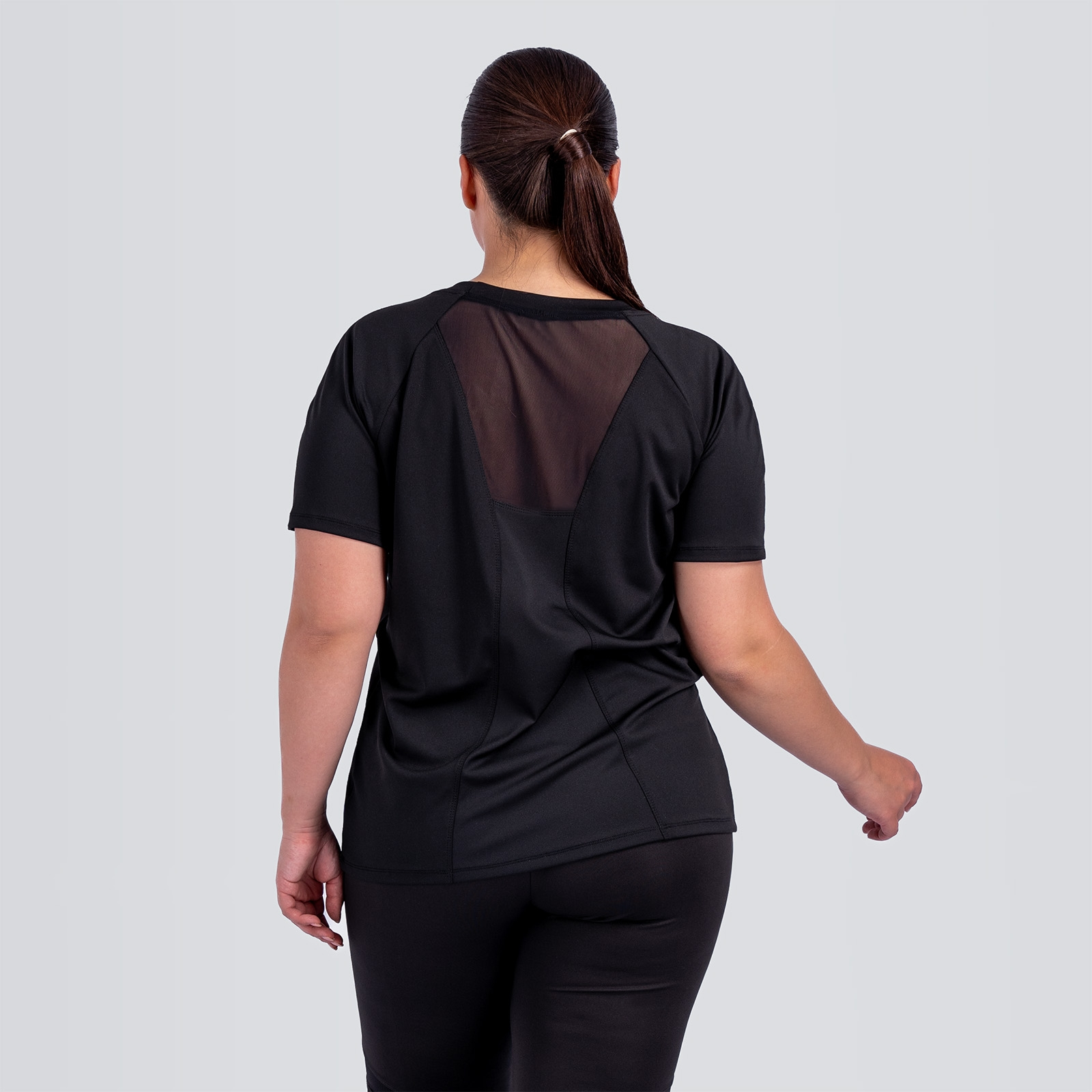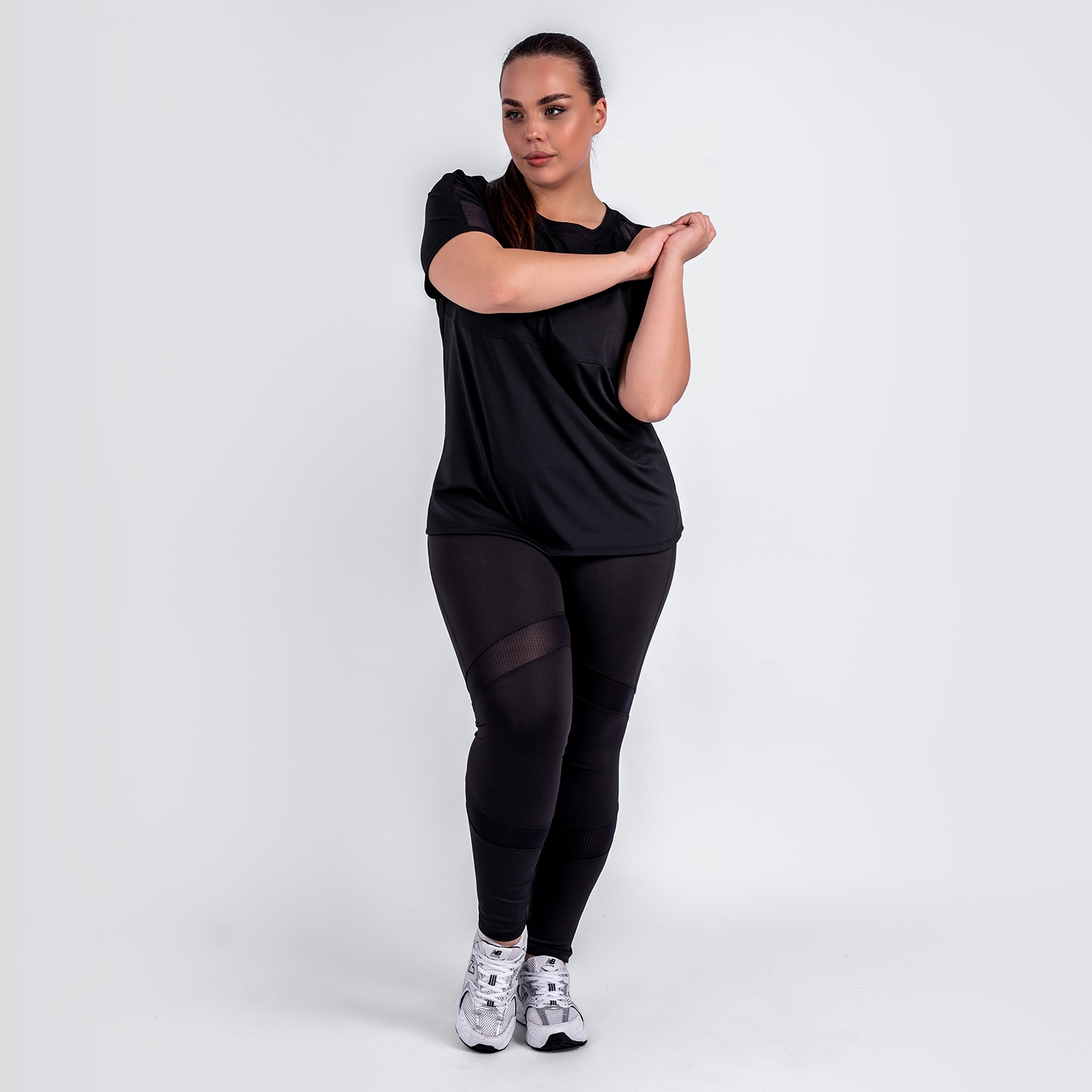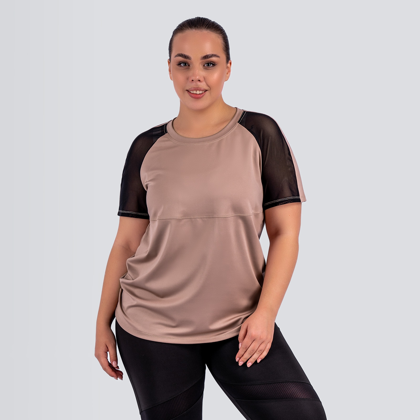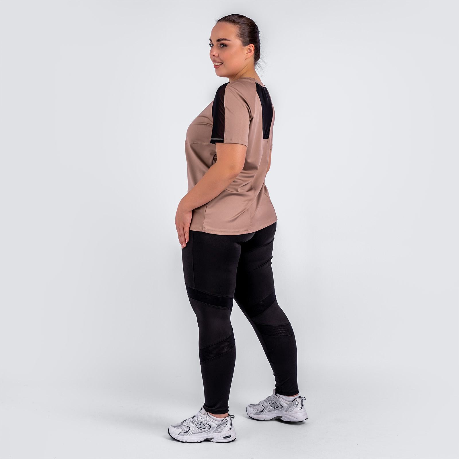 Женская футболка прямого кроя, с резными линиями, вставками из сетки и рукавом реглан. Материал: Meryl Pro - гипоаллергенный материал, не содержащий токсичных компонентов. Обладает высокой эластичностью, но при этом отлично держит форму. Шелковистый на ощупь, имеет водоотталкивающие качества. Не мнется, не садится после стирки и не оставляет разводов. Состав: 90% Polyamide, 10% Elastane nanoMeryl (cетка) - прозрачная, тонкая разновидность сетки с круглыми мелкими ячейками. Ткань прекрасно тянется во всех направлениях, но при этом хорошо держит форму. Мягкое и гигроскопичное полотно, имеет высокую воздухопроницаемость и стойкость к истиранию. Состав: 90% Polyamide, 10% Elastane
