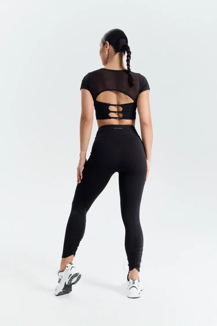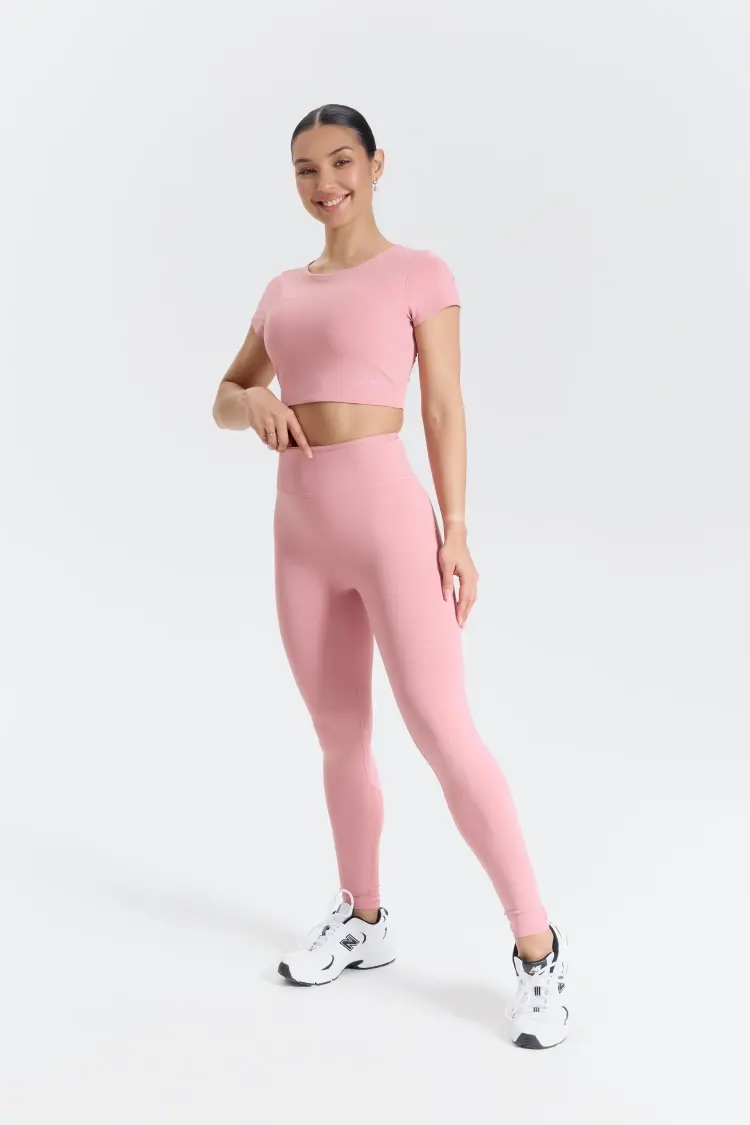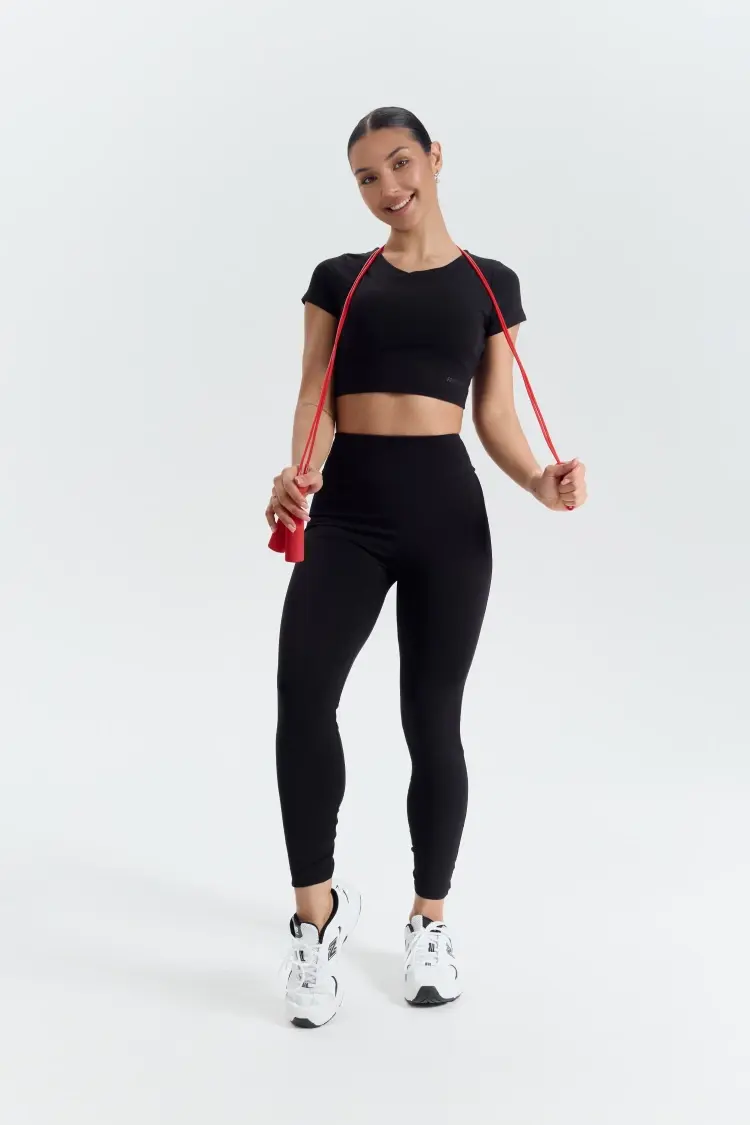– Короткий крой подчёркивает талию и идеально сочетается с лосинами высокой посадки.
