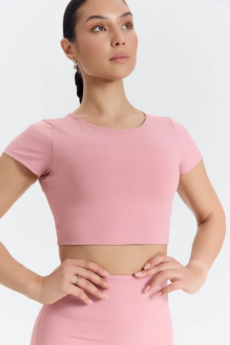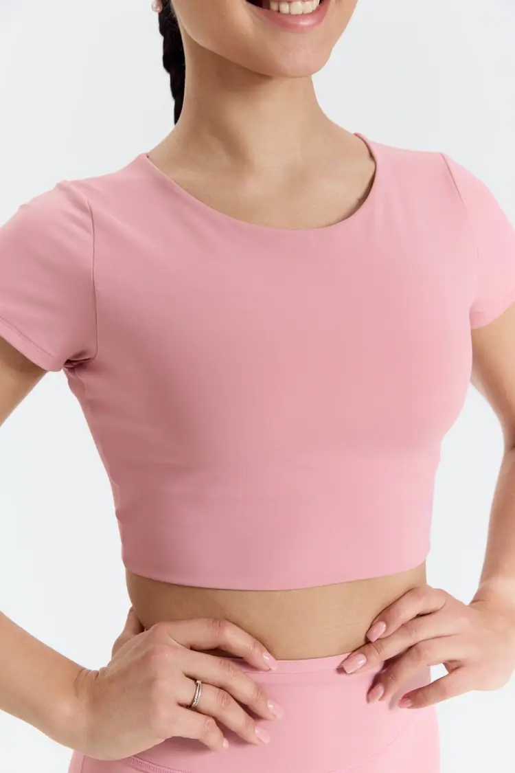 – Спортивный топ-футболка из премиальной гладкой ткани с «масляным» скольжением: мягкая, приятная к телу.