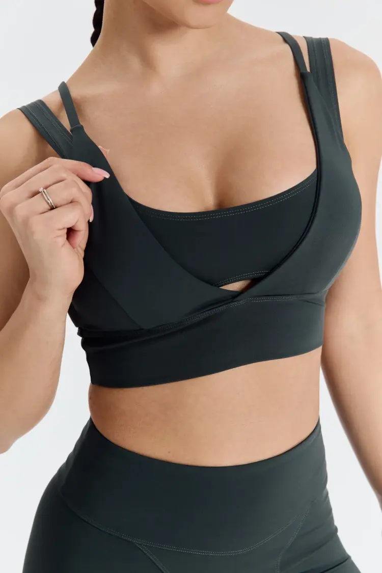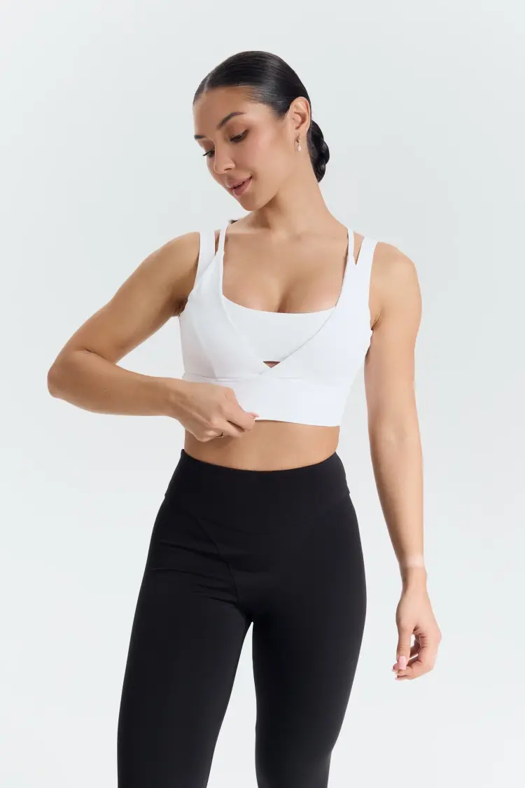 – Спортивный топ из премиальной ткани — гладкой и «скользкой», с ощущением «ткани-масла».