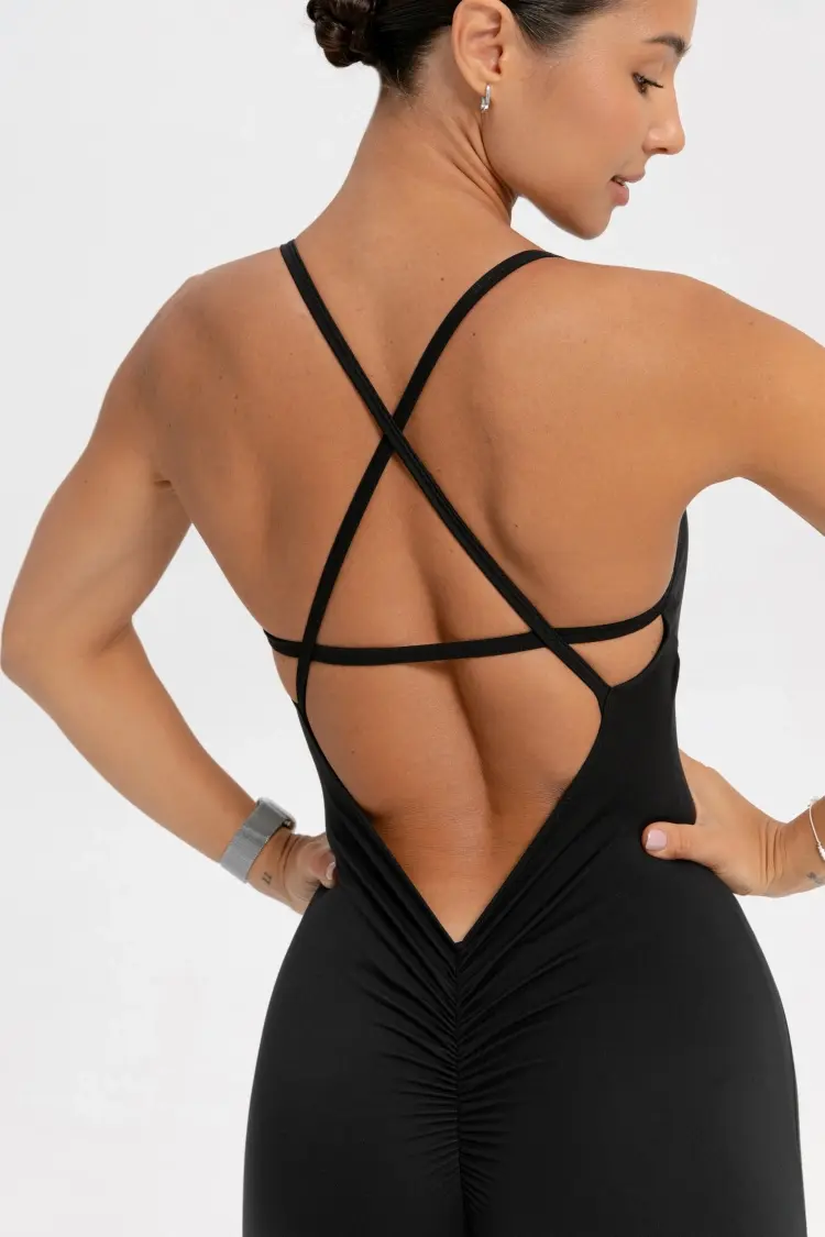 - Плоские швы предотвращают натирание кожи, что делает комбинезон идеальным для интенсивных тренировок.