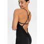 - V-образный вырез на спине с перекрещенными тонкими бретелями добавляет изящества и создает акцент на спине.