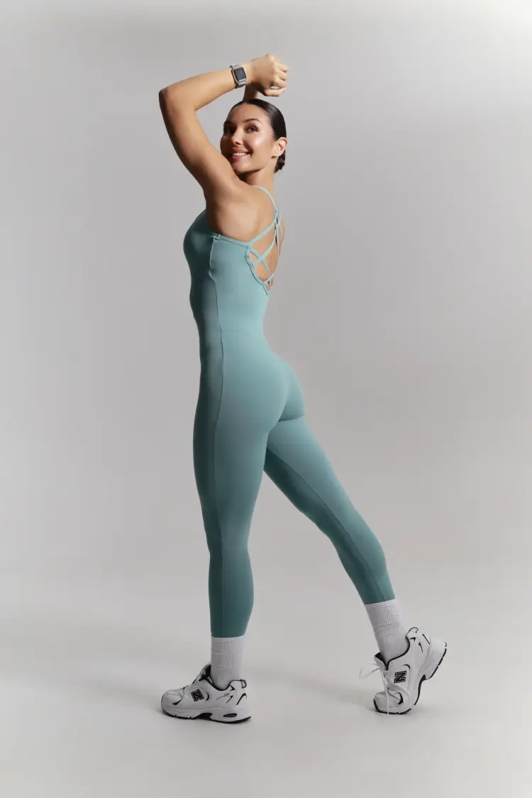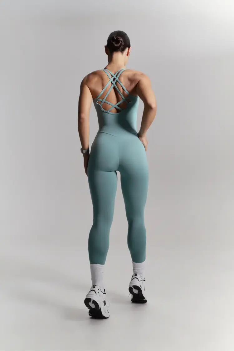 - Верхняя часть комбинезона - маечка с открытой спиной на бретелях перекрещивающиеся на спинке.