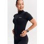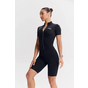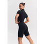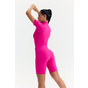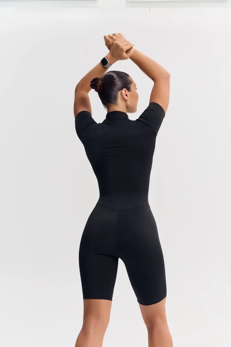 - Облегающий комбинезон с коротким рукавом и молнией спереди — акцентный образ для активных тренировок и athleisure-луков.