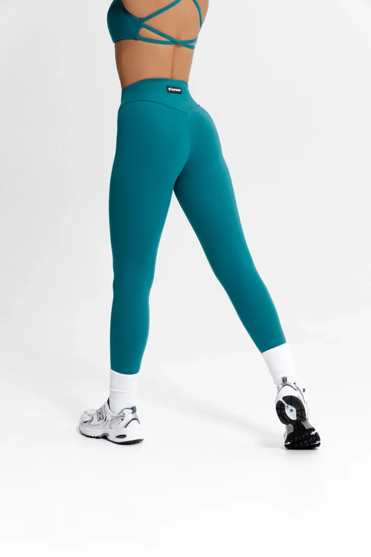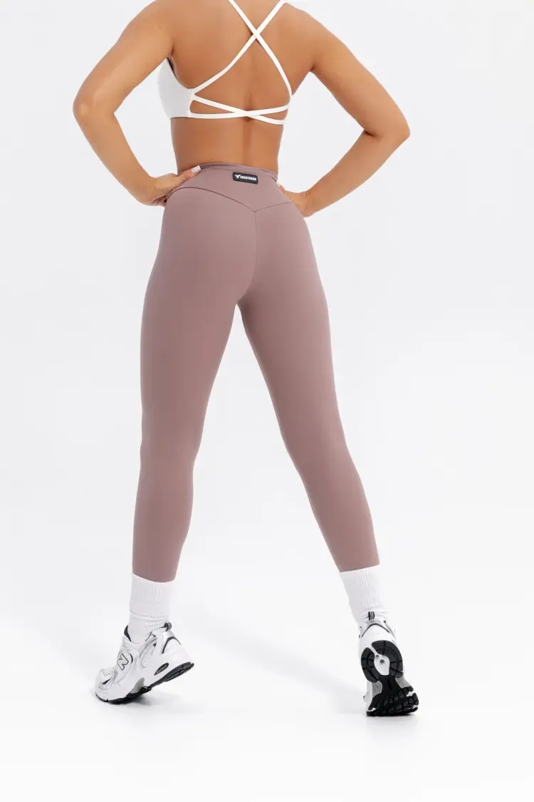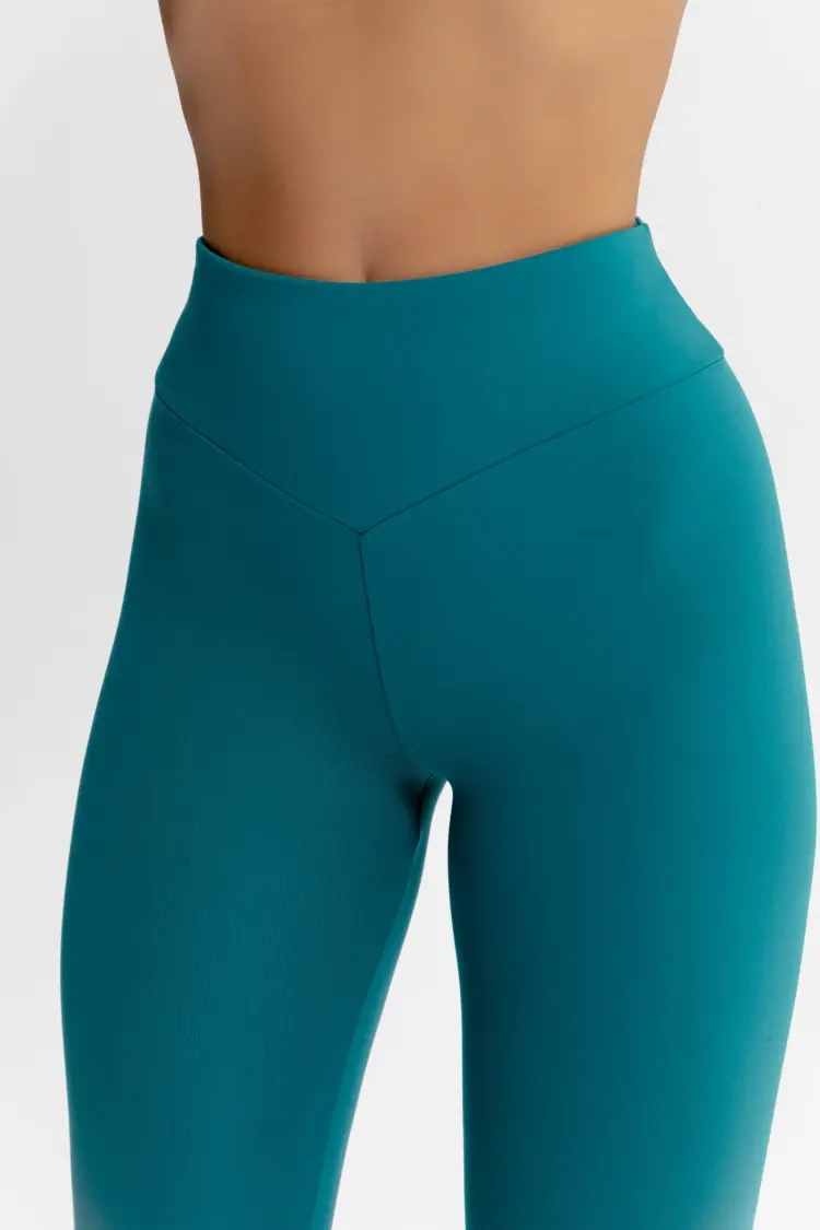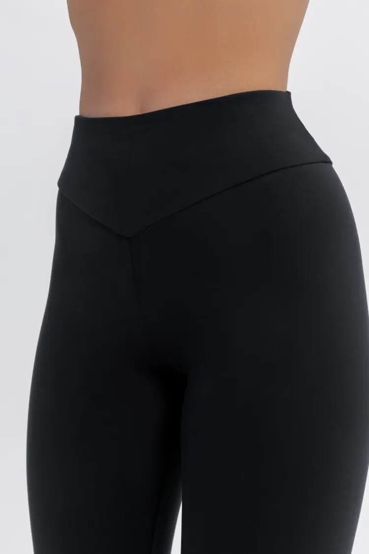 - Леггинсы с широким, высоким поясом, спереди и сзади в форме галочки.