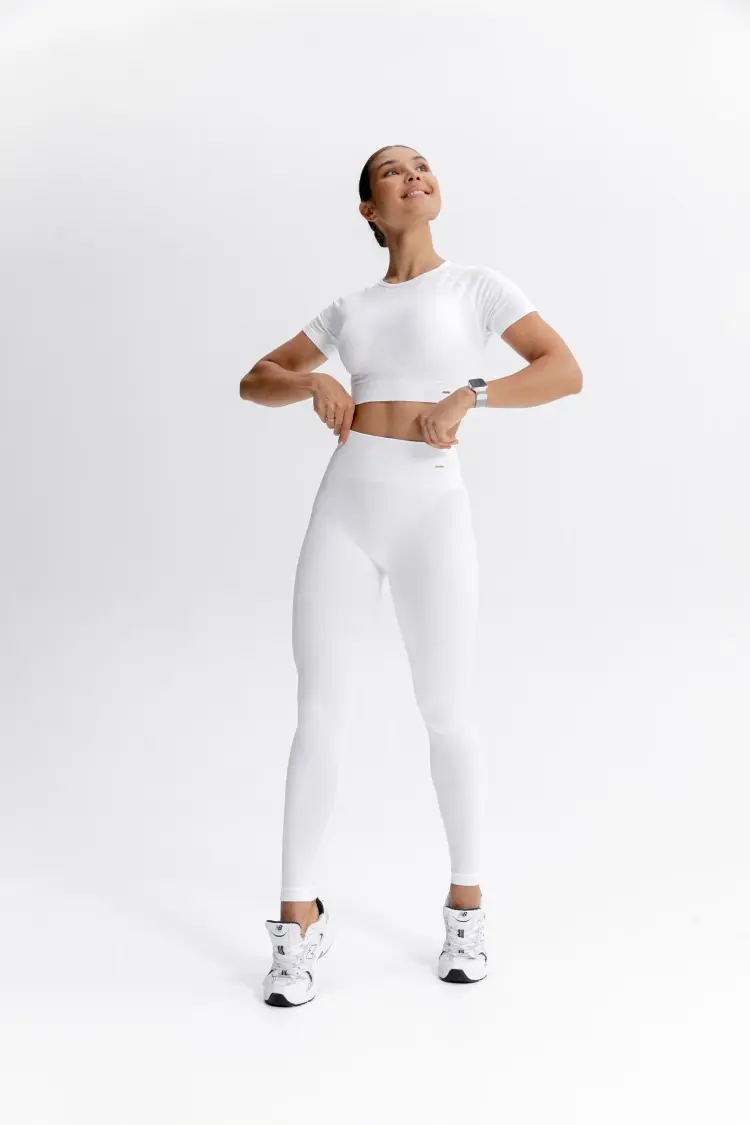 - Бесшовные лосины с высокой посадкой, выполненные из плотного, но удивительно мягкого полотна.