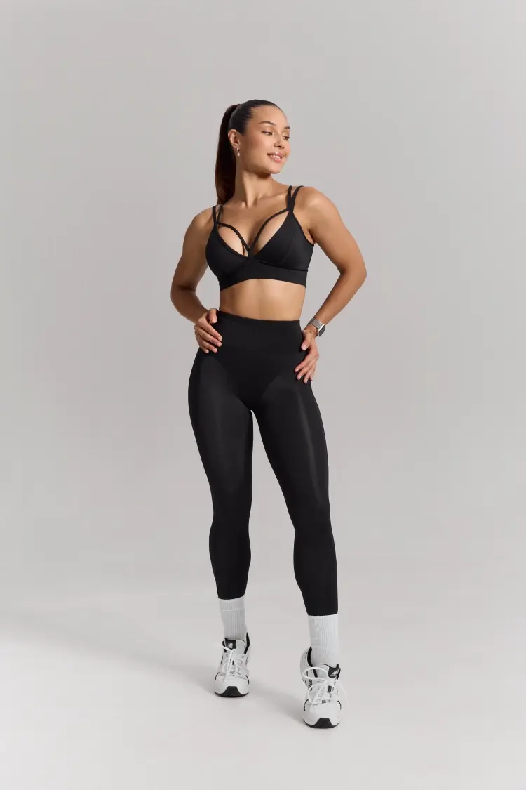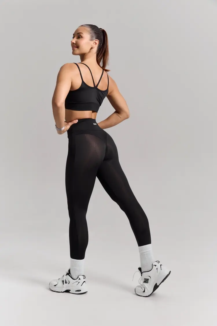 – Основная часть выполнена из лёгкого эластичного полотна с микропорами для лучшей вентиляции и комфорта при тренировках а вставки — из плотного матового материала, создающего эффект «бикини» и подчёркивающего форму ягодиц.