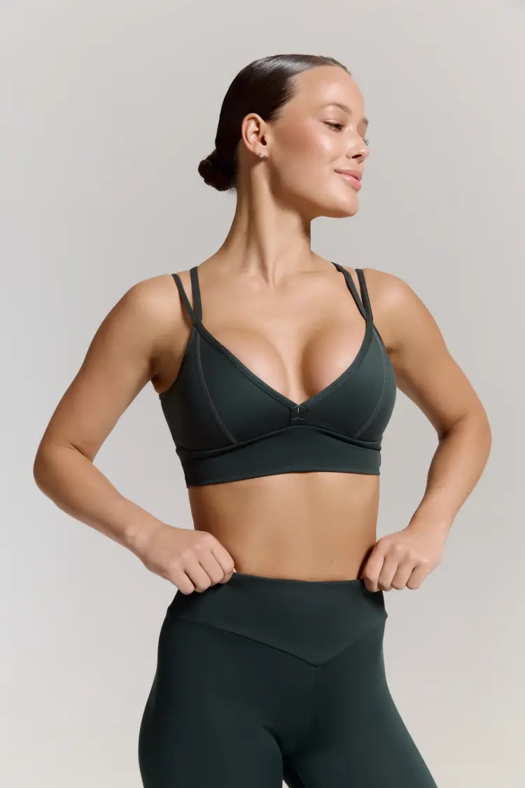 – Удлинённая линия под грудью обеспечивает надёжную фиксацию и комфорт даже при активных тренировках.