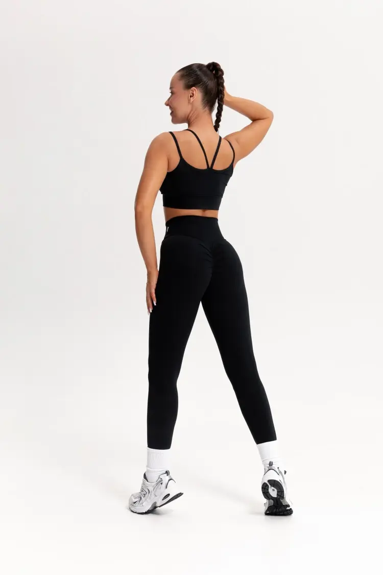 - Главная фишка этих лосин – push-up эффект, который достигается с помощью складок.